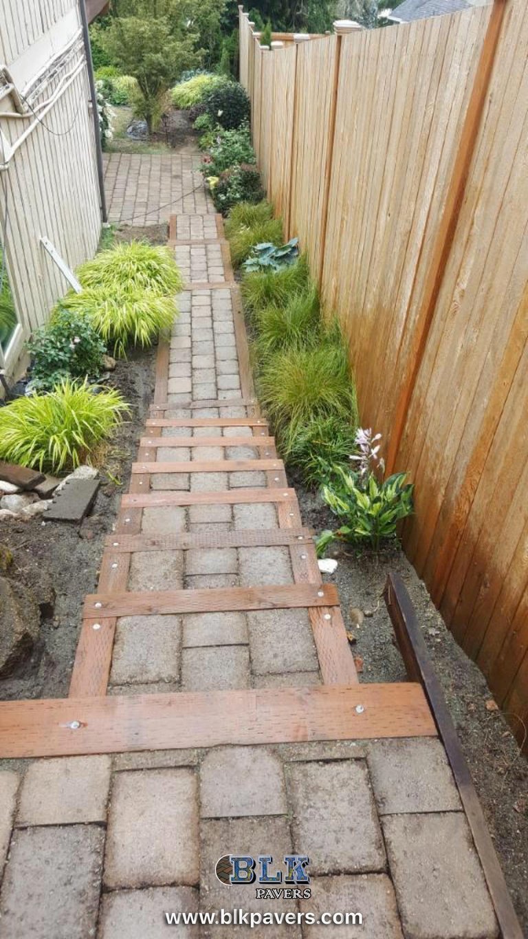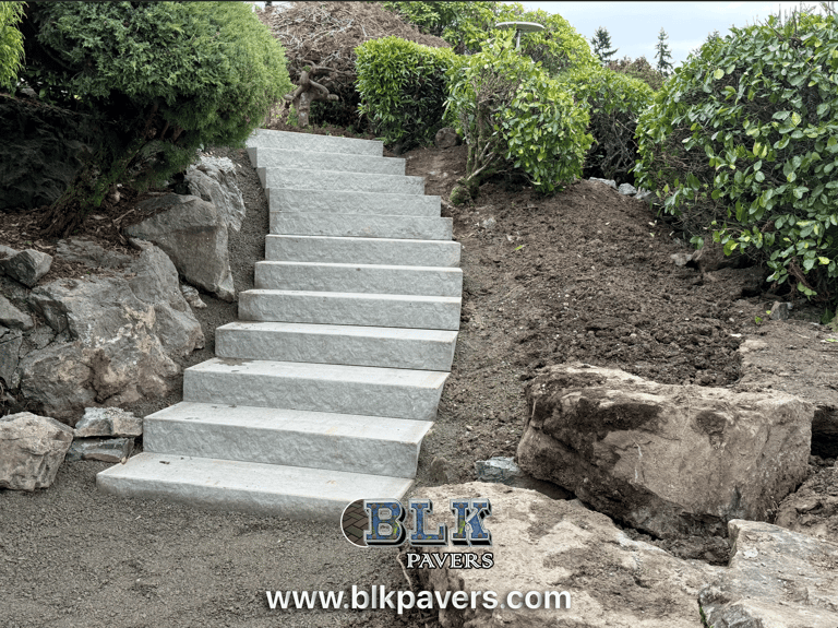 Outdoor stairs can be built using materials such as concrete, pavers, stone, or wood, depending on the design, location, and overall style of the landscape.