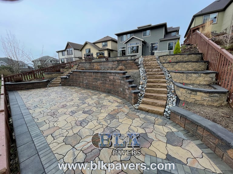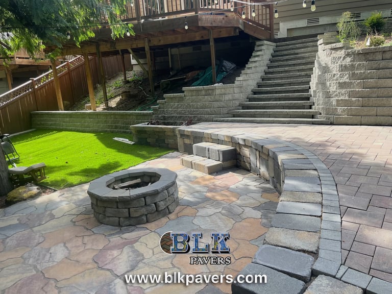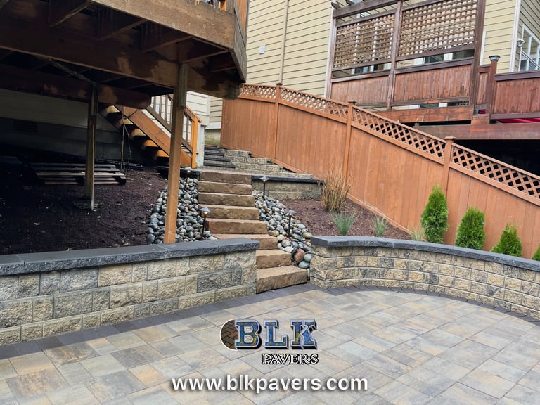 Outdoor stairs allow safe and convenient movement between different elevations on a property, such as between patios, walkways, yards, or retaining walls.