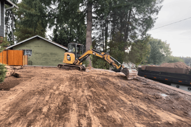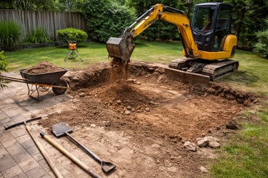 Residential excavation for select projects, including trenching and site preparation to support pavers, patios, and landscape improvements.